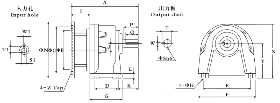 | 入力軸尺寸 INPUT BORE | 出力軸尺寸 OUTPUT SHAFT | |||||||||