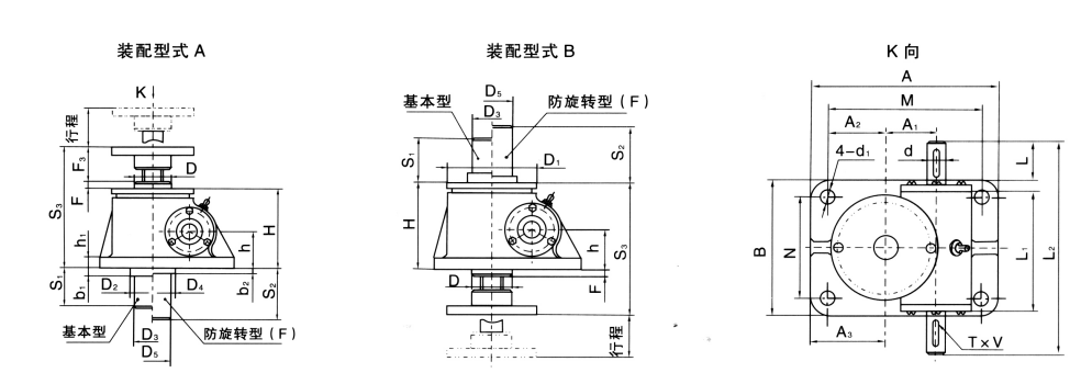 | 型號(hào) | s1 | s2 | s3 | A | B | M | N | H | h | h1 | d(k6) | d1 | 鍵GB1096 | L | L1 | L2 | D | D1 | D2 | D3 | D4 | D5 | A1 | A2 | A3 | B1 | B2 | F |