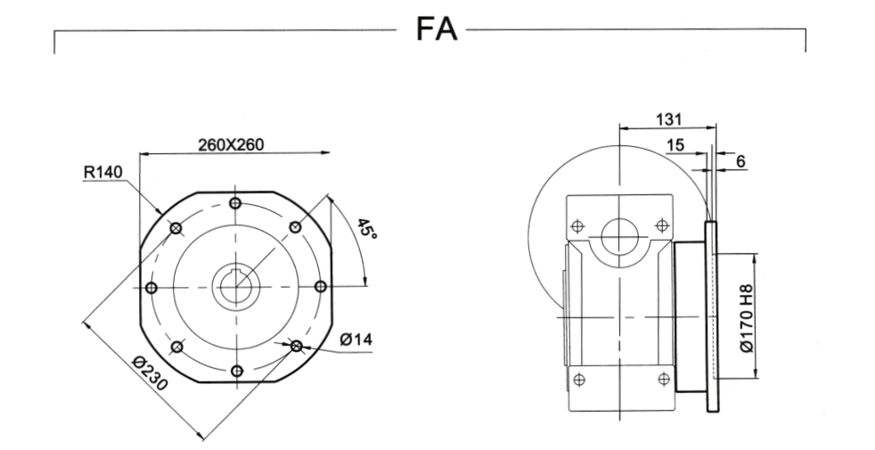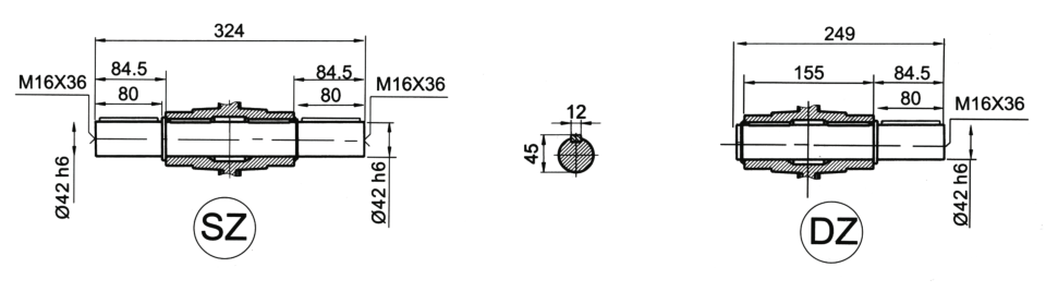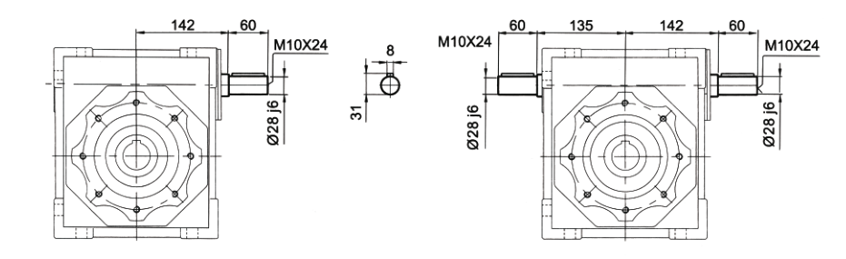 | 入力軸大小 | 19mm|24mm|28mm|38mm | 出力孔大小 | 42mm |