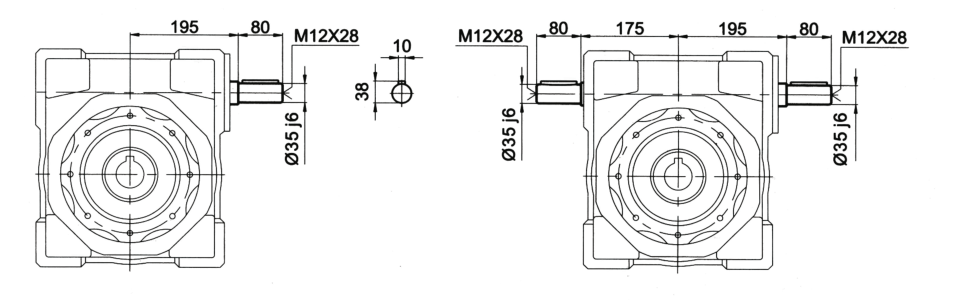 | 入力軸大小 | 28mm|38mm|42mm | 出力孔大小 | 50mm |