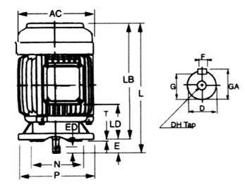 | 輸出馬力(HP) | 框號 | AC | AD | AE | KK | L | LB | LD | M | N | P | S | T | 軸端 | |||||||||